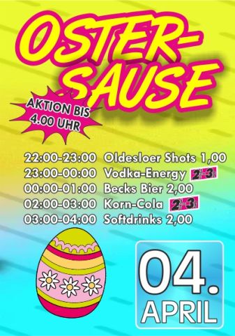 OSTERFERIEN 2026! Das wollen wir mit euch feiern. Unter dem Motto "SHOT-NIGHT" gibt es diverse Shots zum Aktionspreis. Aktion begrenzt bis 1.00 Uhr